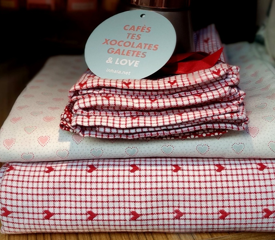El mantel de algodón con corazones “We are Love” de Blanc Maricló mide 150 cm. x 270 cm.